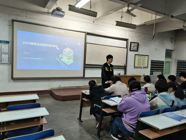 诚信档案填写过程中,由通晓具体事项的相关人员指导,并播放PPT针对专项说明。同时,安排部分专业人员进行信息监督、帮助同学填写。大学生在校期间的学业成绩、任职记录、助学贷款记录、奖惩信息等优异表现和失信行为都会被记录在档案里,并伴随个人就业流转到用人单位。通过此项活动的开展2020级新同学们深切感受到诚信一词在大学四年中的重量,“言不信者,行不果”。同学们在大学生活中必将以满分的诚信去铸造一个令人憧憬的前程,并在漫漫人生路上以“慎独”作为自己的座右铭。褒有一份诚信的品格,传承一份学子的风尚。