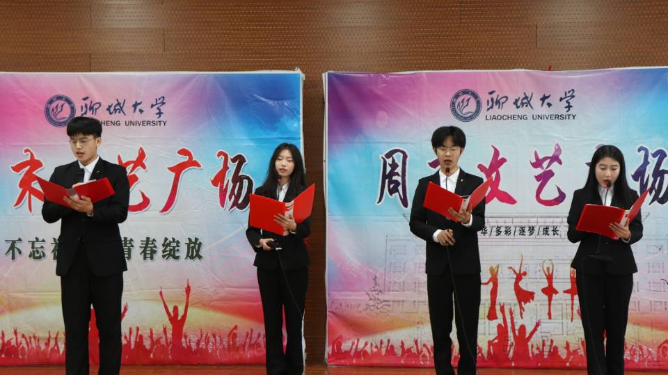动感音乐悦耳,翩跹舞步动人。本次活动以唱歌、跳舞、朗诵为主要表演形式,在四位主持人激情洋溢的开场白中拉开帷幕。歌曲《寄生离群》伴随着浪漫的旋律,带着时间教会的理智与岁月铭记的过往,教我们懂得适可而止;《晚夜微雨问海棠》伴着温柔的情怀,诉说着对那个人炽热的爱意与无悔的追随,感人至深;《会呼吸的痛》伴着舒缓的音律,带着深深的思念,倾诉着往日的遗憾。舞蹈《Tomboy》、《yujo》用激情与活跃点亮舞台,用青春活力带给我们视觉冲击,热闹欢腾的场面激起了观众们的阵阵掌声,将现场活动氛围推向高潮。歌曲串烧《小幸运》、《当你》、《往后余生》、《像风一样》轮番上演,在温柔婉转的节奏中寻找自己的故事,感受对过往分离的痛彻与对未来的期待,用舞动的音符演绎出青春的色彩。一首《There ''s Nothing Holdin ''Me Back ( NoTED Remix)》描绘出像北斗星一样闪耀的你,照亮了我整个人生;一曲《沈园外》让我们穿越时空,倾听着陆游、唐宛、赵士程之间的故事与不舍;歌曲《狐狸》唱出在千万取舍与无奈中放下成见的希望,寻求心灵的安息。慷慨激昂、气势磅礴的诗歌朗诵《我的中国梦》为本次周末文艺广场收尾,在一片掌声和欢声笑语中圆满落下帷幕。