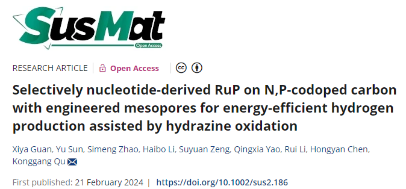 伟德bv1946官网首页曲孔岗课题组在SusMat(影响因子:28.4)发表了题为Selectively nucleotide-derived RuP on N,P-codoped carbon with engineered mesopores for energy-efficient hydrogen production assisted by hydrazine oxidation的研究论文,利用具有超低理论氧化电位的肼氧化反应取代析氧反应来降低整体电势,在钌基纳米材料用于肼氧化辅助的节能型制氢领域取得突破。